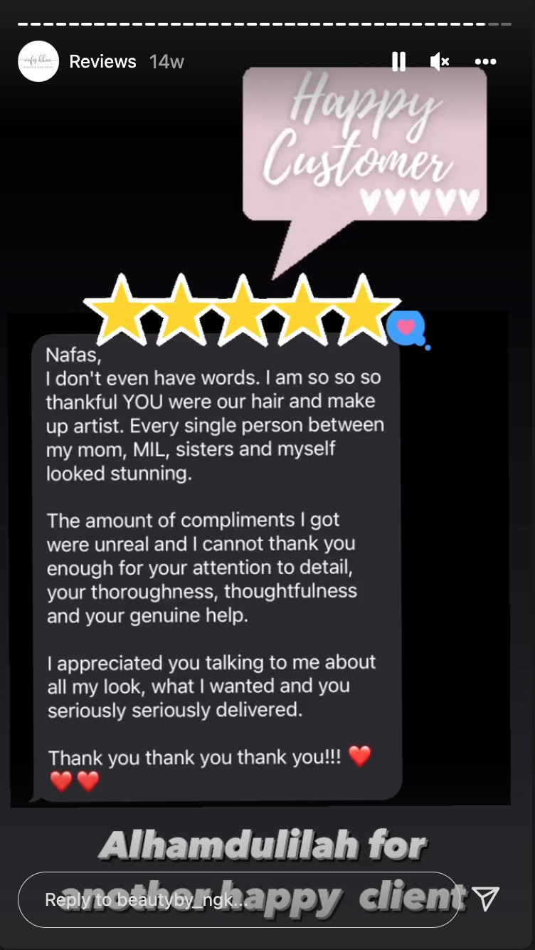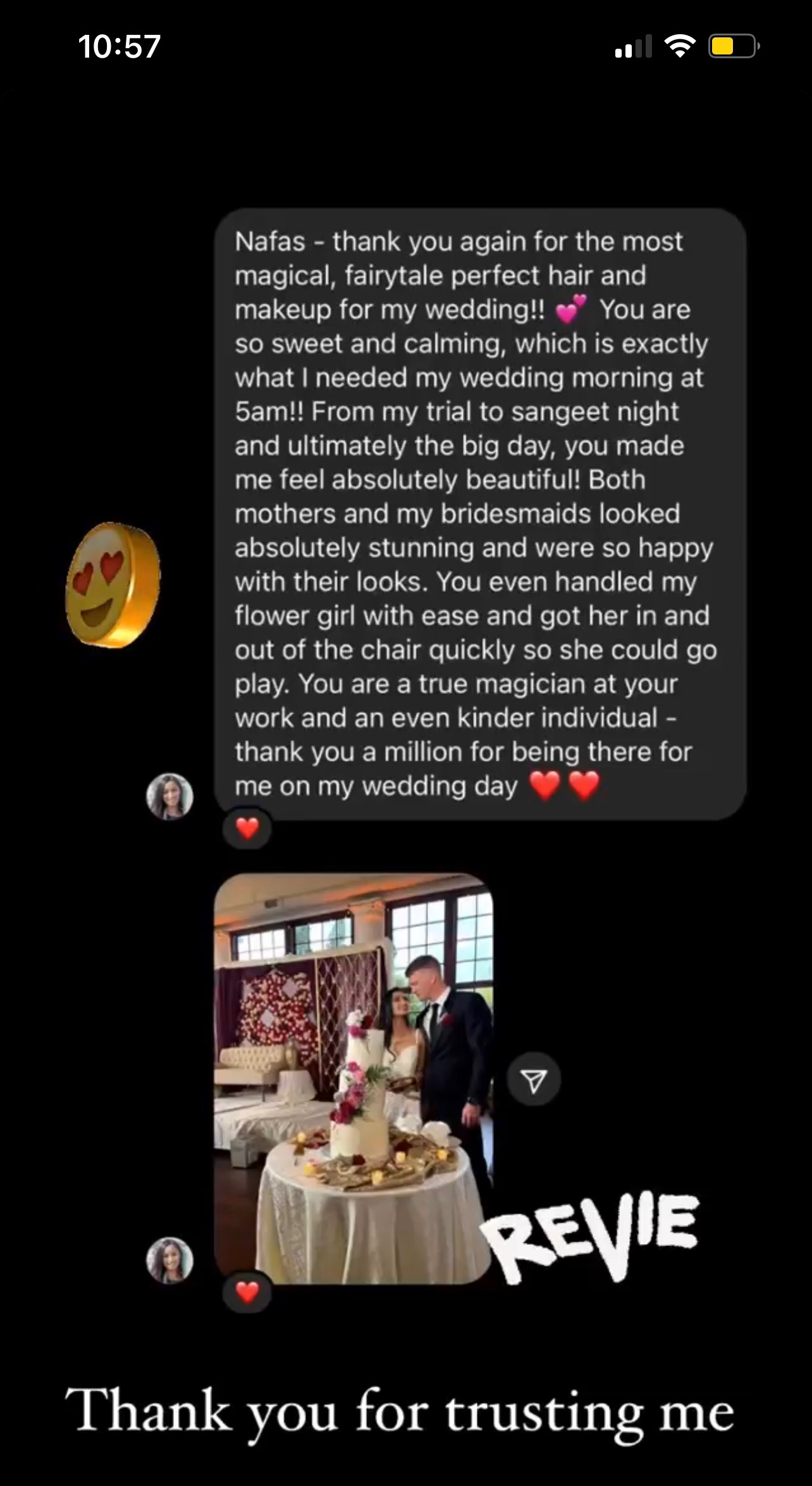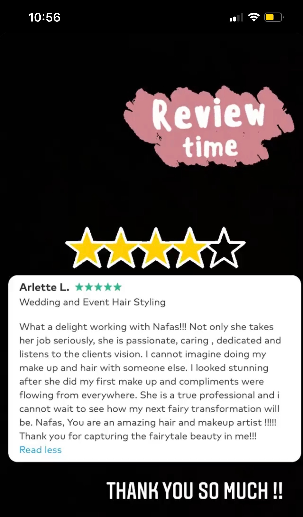 "Nafas did the makeup for me and did an absolutely amazing job. She is beyond fabulous!!!!!!"